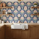 Elegante Aquarellmatte. Diese raffinierte dekorative Fliese zeichnet sich durch ein klassisches Damast-Muster aus, das in einem sanften Aquarell-Stil gerendert wurde. Die schöne Mischung aus Korallen, Marine und subtilen grünen Farbtönen schafft einen raffinierten und künstlerischen Look. Ideal, um eine Touch von traditionellem Charme zu schaffen, um Backsplashes, Akzente oder dekorative Displays zu genießen.