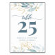 Wasserfarbe Dusty Blue Gold Flora Hochzeitsfeier Tischnummer