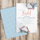 Dieses Design besticht durch eine schlichte, blau gekalkte Geburtstagseinladung mit einem blauen Gingham-Tischlermuster mit einem nautischen Krabbenbake-Party, einem lebendigen Küstenmeer, das sich hervorragend für das Party mit Meeresfrüchten Dinner eignet, einem stilvollen, trendigen Schriftart mit Typografie, einer modernen Kalligraphie-Schrifttyp mit Maryland New England Maine-Stil, weißer Küste Beine gekocht gebacken, ein elegantes, stylisches lustiges Wasser Ozean, mit einem Krustentier rot blaues Tier, mit einem blauen Wasser, Ozean, Meer nautische Einladung
