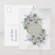 Lila Aquarellfarben-Blume Save the Date Postkarte mit Grün und Grautönen.