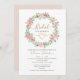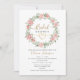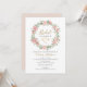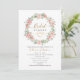 Moderne, elegante, weiße und rot-rosa Blumendusche Einladung mit goldenem Seil Herz, Blumenkranz und einfacher Kalligraphie-Schrift.