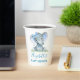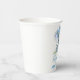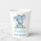 Watercolor Baby Elephant mit einem Blue Bow auf Ferns Baby Shower Paper Cups. Blauer Text.