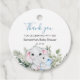 Ein kleiner Elefant, eine Touch Grün und ein herzliches Dankeschön - die perfekte Kombination für Ihre Babydusche! Dieses runde Aquarellschild verleiht jedem Geschenk ein traumhaftes, sanftes Ambiente und sorgt dafür, dass Ihre Gäste mit einem Lächeln verlassen werden.