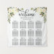 Schöne Sitzkarte in Aquarell, Blütenpinke, Elfenbein, Creme und Grün für 12 Tische. Weißer Hintergrund. Einfach die Namen Ihrer Gäste hinzufügen. Ideal für die Dekoration des Empfangs in der Halle. WILLKOMMEN Zeichen in Kalligraphiebriefen.
