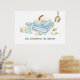 Personalisiertes Badplakat mit Elfenbein-Farbseife, Rose-Bud, Handtücher, Dosenmilch und Seeschnecke.
