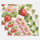 Wasserfarbe Erdbeeren Früchte und rosa Blume Geschenkpapier Set
