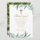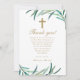 Botanische Aquarellgrün Blätter mit einem einfachen goldenen Kreuz und vollem Foto Rückseite der Karte, religiöse katholische Erste Heilige Kommunion Dankeschön an die Gäste für die Feier Ihres Kindes den ersten Empfang der Heiligen Eucharistin.