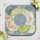 Schöne Aquarell-Hydrangeas, rosa und cremefarbene Rose, Gänseblüten, kleine Blüten und Blätter in staubblauer Farbe, personalisieren Sie diese quadratischen Teller für Ihr Brautparty, Verlobungsfeier, Hochzeit oder jede Gelegenheit mit Ihren Details in schicken Schriften. PASSENDE Artikel in unserer Sammlung.