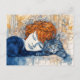 Wasserfarbe Frau Schlafen mit Katze Postkarte