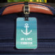 Türkisblaue Ankerwasserfarbe mr und mrs Reisegepäck Tag. Personalisiertes Wasserfarbetikett für Beutel und Koffer. Gewittertes Schiff / Schiffsanker mit Vintager Typografie. Stilvolle maritime Geschenkidee für Damen und Herren. Anpassbarer Name. Niedliche Gunst für Beachtheaterhochzeit. Mr. und Mrs. design.