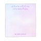 Dieses Notizblock weist einen lila pastellfarbenen Cloud-Hintergrund auf, mit dem Skriptziffer "sie hat ihre Dosen in Dosen verwandelt und ihre Träume in Pläne". Anpassen und bearbeiten Sie den unteren Text, um Ihren Namen oder anderen benutzerdefinierten Text einzufügen. Ideal für Ihr kleines Unternehmen, für Ihre nebenberuflich tätige Arbeit oder die Schule, für einen Mädchenchef oder einen Schüler. Liebe dieses Design? Stellen Sie sicher, dass Sie die Auflistung für die Koordination der Elemente ausfüllen.