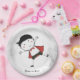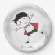Watercolor Happy Stick Boy Red Cape Schöne Papier Teller. Einzigartiges, schönes, stilvolles Design. Leicht personalisiert zu sein. Schriftart Stil, Größe und Farben können geändert werden. Matching-Elemente sind verfügbar.