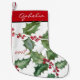 Weihnachtsstrumpf | Wasserfarbe Heilige und rote Berries - Weihnachten in Goldkalligraphie - und datiert. Ein roter Strumpf mit Ihrem Namen in weißer Kalligrafie. Original Artwork © by WhimsicalArtwork™ Dies ist Teil eines Mix und Abstimmung koordiniert Holiday Watercolor Holly and Red Berries Collection.