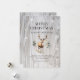 Aquarellfarbene Urlaubskarte mit einem Reh im Wald vor einem rustikalen Holzboden, der mit Schneeflocken geschmückt ist. Personalisieren Sie diese Urlaubskarte einfach mit Ihrem Familiennamen und Text.