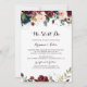 Diese Aquarellfarbe illustriert, die wir noch immer versprechen Einladung ist perfekt für eine einfache Gelübde Erneuerung Zeremonie und Feier. Das Design mit kunstvoll handbemalten Aquarellblau, bordeauxrot, rot, rot, blüten Rose und Pfannkuchen mit eleganten grünen Blätter inspiriere die farbenfrohe, idyllische Herbstschönheit.