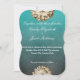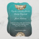 Eine wunderschöne Blume am Boden mit aquamarinem Aquarellhintergrund gibt einen natürlichen Ausblick in die Gestaltung der Hochzeitseinladung. Eine Hochzeitseinladung ist ein Aquarell inspiriertes Design mit einer aquamarinen Farbe mit weißem Text.