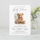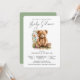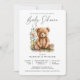 Freuen Sie sich auf diesen niedlichen, kleinen Teddybär, der zwischen den Blume sitzt und in einem minimalistischen Stil mit moderner Wasserfarbe eine Babydusche einlädt.