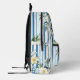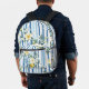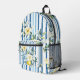 Eleganter und stilvoller floraler Rucksack mit einem lebhaften blau-weiß gestreiften Hintergrund mit zarten gelb-weißen Blume. Ideal für lässige Ausflüge, Schulungen oder als funktionelles und dennoch modisches Accessoire.