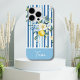 Stilvoll und individuell gestaltbar, mit einem lebhaften blau-weiß gestreiften Design, zarter gelb-weißer Blume, Zitronenakzent und personalisiertem Text. Ideal, um dem Gerät eine feine und elegante Touch hinzuzufügen.