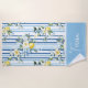 Stilvolles und individuell gestaltbares Strandtuch mit lebhaftem blau-weiß gestreiften Design, zarter gelb-weißer Blume, Zitronenakzent und personalisiertem Text. Ideal, um dem Gerät eine feine und elegante Touch hinzuzufügen.