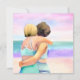 LGBTQIA+ lesbische Frauen oder transgender Hochzeitseinladungen. Hübsche Aquarellbilder von zwei Frauen am Strand mit Blick auf Wasser und Sonnenuntergang.
