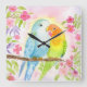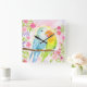 Wasserfarbe Liebesvögel mit rosa Blumen Quadratische Wanduhr