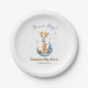 Elegant schlicht Es ist ein Junge! Babydusche Papier Teller, mit Aquarell gezeichnet von einer süßen niedlichen lächelnden kleinen Babygiraffe mit einem staubigen blauen Band, Sitzmöbel in einem Halbmond, umgeben von Aquarellblau, hellblauen Sternen, die den Hintergrund schmücken. Sie können diese schönen Teller mit Ihrem eigenen Text anpassen.