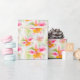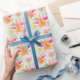 Gemusterte peruanische Lilie Alstroemeria Aquarell-Waschkunst florale Verpackungspapier in modischen Pastellpinken, grün, goldgelb und cremefarben. Ideal, um Geschenke für Geburtstage, Ostern und andere Feierlichkeiten einzupacken. Original Muster entworfen und in Aquarellfarbe von Sarah Trett gemalt.
