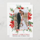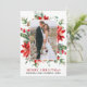 Elegante Watercolor Poinsettia Blumengrün Frohe Weihnachten Weihnachten Foto Neu verheiratete Holiday Card beinhaltet rote Poinsettias, Eukalyptus-Blätter, Kiefernzapfen, Kiefernnadeln, Baumwolle, heilige Beeren und andere schöne Winter botanische Vegetation.
