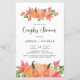 Das individuell gestaltbare Herbstpaare Duschkabine lädt die Gäste zu einer Duschkabine ein. Hier finden Sie orangefarbene Kürbis, Blätter aus Ahorn und Grünpflanzen. Persönlich gestalten Sie diese Aquarelldusche mit Ihren Veranstaltungsdetails. Dieser Kürbis hat eine Duscheinladung für Herbstduschen.