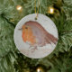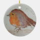 Meine ursprüngliche Wasserfarbemalerei von einem niedlichen Robin, der bereit ist, an Ihrem Weihnachtsbaum zu hängen, wird schön hier reproduziert