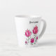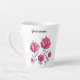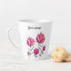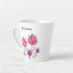 Rosa Blume personalisierte latte Tasse mit einer schönen Tinte und Aquarellbild von abstrakten Blume über weißem Hintergrund.
