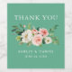 Elegante Watercolor Rosa Blütengrün Hochzeit Danke Wein & Sekt Label beinhaltet rosa weiße Rosen und andere schöne grüne. Neo Mint Hintergrund.