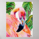 Aquarell Rosa Flamingo mit grünen tropischen Blättern