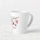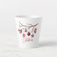 Die Tasse von Holiday latte mit einer Aquarellbilderung von Zierzangen, Pinecones, Bögen und Sternen, die auf einem Ast hängen, mit dem Gruß Frohe Weihnachten unten in einer Farbe, um Abbildungen. Weitere Größen sind erhältich.