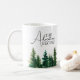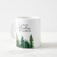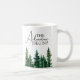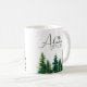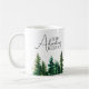 Wasserfarbener rustikaler Pinienwald "das Abenteuer beginnt" Kaffee-Tasse. Personalisierbar!