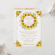Schöne Aquarellsonnenblumen und Blumenkränze mit Blumenrahmen mit goldenem Glitzer Konfetti und weißem Blumenhintergrund