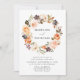 Elegante Herbsthochzeitseinladungen mit Blumen, die Ihre Hochzeitsdetails zeigen, umgeben von einem Kranz aus Aquarellfarben, Sukkulenten und Blätter in Rosa, Pfirsich, Orange, Creme, Grün & Braun. Die Blumenhochzeit im Herbst lädt zum Umkehren ein, um einen soliden grünen Hintergrund zu bieten.