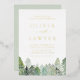 Mit einem immergrünen Wald in Aquarellen und schneefallendem Schnee ist diese Duscheinladung ideal für Paare, die vor ihrer Hochzeit ein gemütliches Naturereignis veranstalten. Das weiche, rustikale Design macht es zu einem idealen Ort für Lodge-Dinners, Berghütten oder Winterfeiern. Mit der Vorlage können Sie alle wichtigen Informationen anpassen. Diese Goldfolie kombiniert Duscheinladungen wunderschön mit Wald- oder Außenhochzeiten.
