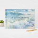 Ein landschaftliches Wasserfarbendenkmal-/BeerdigungsGästebuch mit einer Küstenlandschaft von Meereswellen, die zu einem Sandstrand rollen.