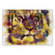 Ein stilisiertes Aquarellbild eines Tigers. Die hellen Gelbtöne, die tiefe Blues und die Purpur kontrastieren sich.
