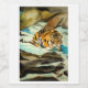 Aquarellmalerei eines Regaltigers im Winter, Pausen für ein Getränk aus einem Paddel schmelzen Schnee. Der Frühling ist gleich um die Ecke.