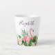 Wasserfarbe tropische Flora, rosa Flamingo, Personalisierter Name Latte Kaffeemaschine Tasse