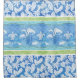 Im Zentrum der Aquarellbahn befinden sich Flamingos, Meeresschildkröten, Seesterne und Muscheln für ein Set mit Strandbadedekor. Handgemalte Aquarellbilder in Caribbean Blue werden mit handgezeichneten tropischen Blätter wie Bananenblatt, Monsterablatt und Blattlphilodendron gepaart. Blau und weiß für eine frische, tropische Wohngestaltung an der Küste. Copyright, Audrey Jeanne Roberts.
