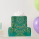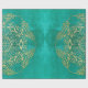 Das Design eines schönen, goldenen Aussehens, der Mandala mit verzierter Blume, die auf einem tiefen Aqua-grünen Aquarell-Hintergrund steht.