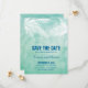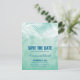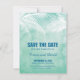 VON DER WEDDING SAMMLUNG: UNTER DEN PALMEN — WEDDING SPEICHERE DAS DATUM ANKÜNDIGUNG in einem Aquamarinen Aquarellhintergrund mit einer weißen Silhouette von Palmbaumzweigen an der Spitze. Blau gefärbte Schriftart sind ausgewählt, aber Sie können anpassen und ändern, zu welchem Schriftart Sie am liebsten. Einfach aber elegant mit künstlerischem Flair. Ideal für jede Hochzeit in Urlaubsort. Für Anfragen über kundenspezifische Designänderungen des unabhängigen Designers senden Sie bitte eine E-Mail an paula@labellarue.com BEVOR Sie Ihre Bestellung anpassen oder anpassen.