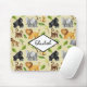 Ein personalisiertes Mauspad mit einem skurrilen niedlichen Safari-Dschungelmuster. Der Hintergrund besteht aus Aquarellsafari-Tieren wie Elefanten, Hyänen, Affen, Nilpferden und Löwen. Auch dekorative Palmen, Savannen und tropische Blätter schmücken dieses Bild. Personalisieren Sie Ihren Namen in einem rautenförmigen Rahmen.