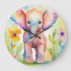 Wasserfarbe Wildtiere Elefant Große Wanduhr