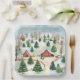 Wasserfarbe Winter Rustikale Landschaft mit Bäumen Pappteller