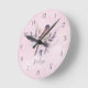 Eine süße Wanduhr für Ihr Kinderzimmer oder Ihr Baby Kinderzimmer mit einem wunderschönen Wasservogel auf einem grünen Zweig in sanften Lila-, Blau- und Rosatönen auf einem hellrosa Aquarell. Passen Sie mit einem Namen in einer spielerischen Skripttyp unter Verwendung des vorgegebenen Vorlagenfelds an. Wählen Sie aus anderen Formen und grauen oder schwarzen Uhrenhänden.